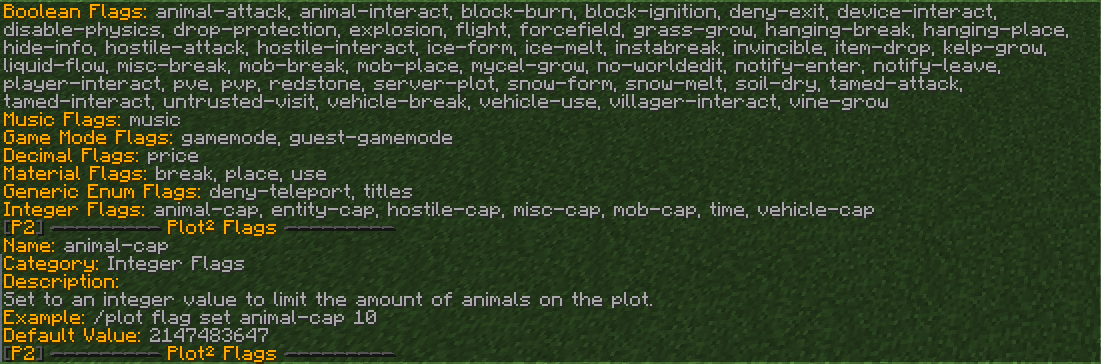 Set to an integer value to limit the amount of mobs on the plot. Applies to the following entity categories: animal, villager, tamable, hostile